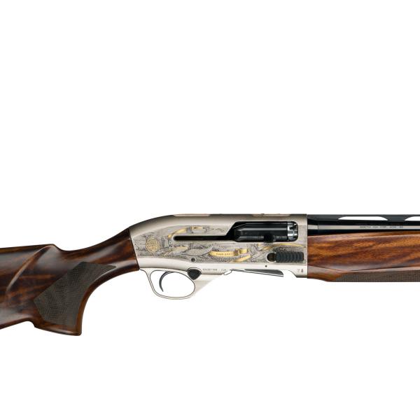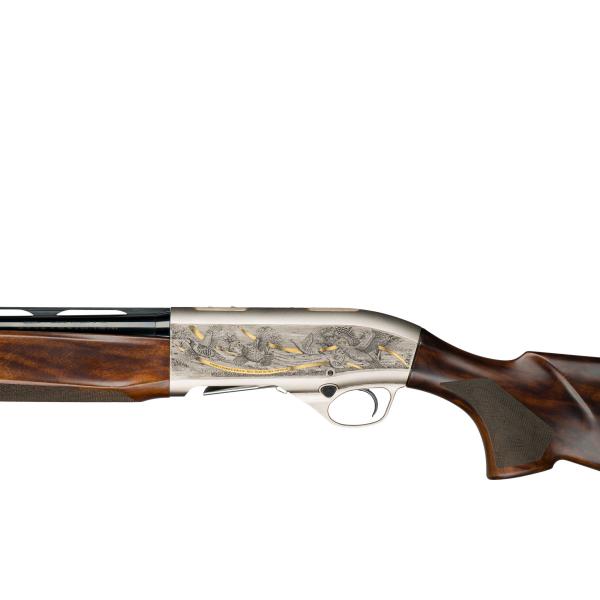 Αυτή η αποκλειστική έκδοση αποτυπώνει την ψυχή του κυνηγιού μέσα από μια εντυπωσιακή, ολοκληρωτικά σκαλισμένη κυνηγετική παράσταση που ρέει αρμονικά στην εμπρόσθια και οπίσθια πλευρά του κομψού κορμού A400, μεταμορφώνοντας το μέταλλο σε τέχνη.