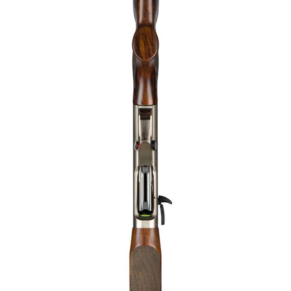 Πινελιές μελανιού και εκλεπτυσμένες χρυσές ένθετες λεπτομέρειες δημιουργούν εντυπωσιακή αντίθεση με τη σκαλιστή διακόσμηση και το κομψό ξύλο Extragrain, καταλήγοντας στο αδιαμφισβήτητο σύμβολο αυτού του ορόσημου: το λογότυπο Beretta 500 Years.